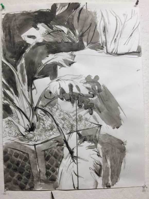 For one assignment, students built their own tools to draw with. This allowed students to break away from the conventional and explore a lot. The process was often hard to control, but the students made it work to create drawings from life.